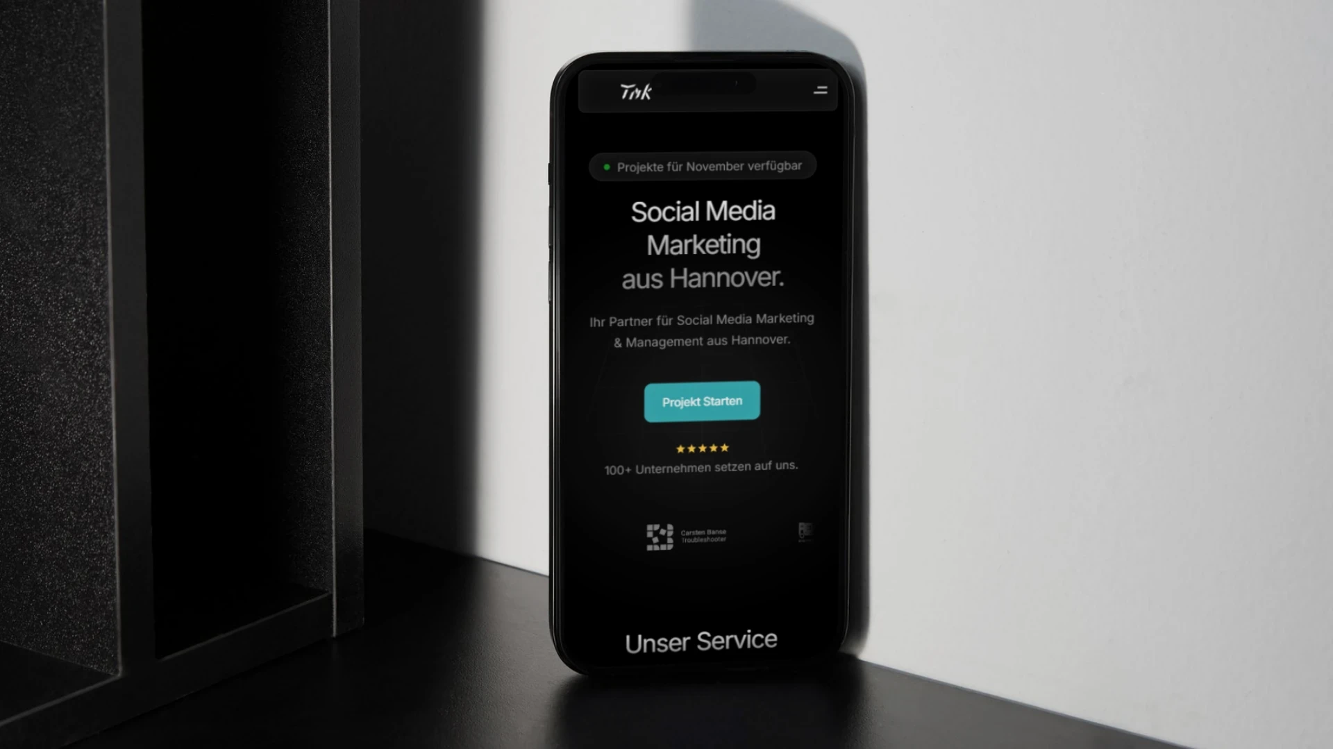 Die TNK Group aus Hannover stand für modernes Social-Media-Marketing, eine klare Markenidentität und digitale Performance. Ziel des Projekts war es, eine Website zu entwickeln, die Professionalität, Struktur und Wiedererkennungswert vereint.
